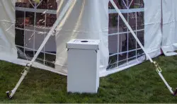 If you want your tent set up on a driveway, patio, or pavement, we can’t use stakes in the ground. Instead, we use heavy concrete blocks to hold the tent down and keep it safe.