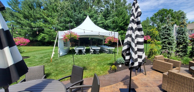 If you want your tent set up on a driveway, patio, or pavement, we can’t use stakes in the ground. Instead, we use heavy concrete blocks to hold the tent down and keep it safe.